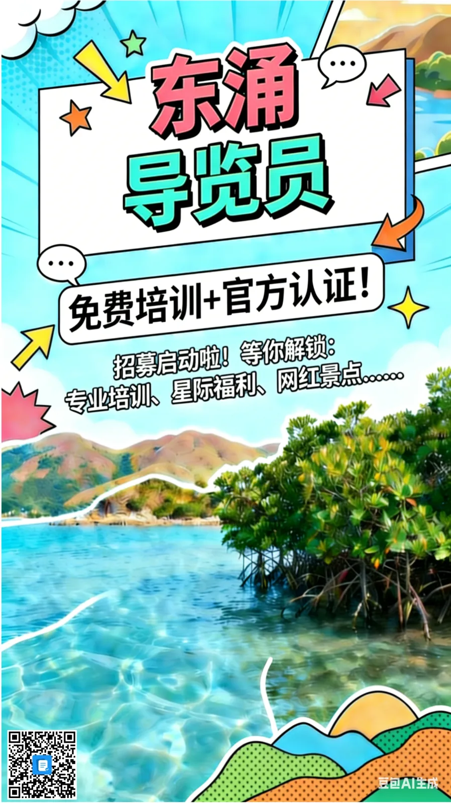 点赞50W+的东涌玻璃海、刷爆朋友圈的“圣象天门”、被央视点赞的红树林湿地园……这些宝藏打卡地,都在我们东涌!这里不缺美景,只缺会讲故事的“你”!只要你爱表达、有热情、愿意分享,就能从“旁观者”变成“主理人”,成为官方认证的导览员!解锁稳定且有前景的家门口就业新路径。
