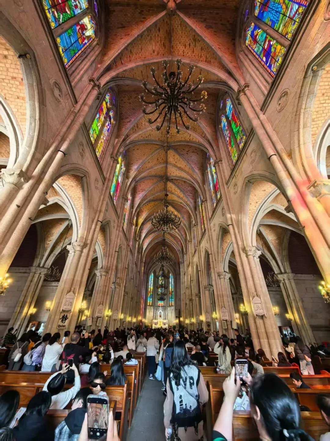 文革时期,石室遭遇更大破坏:彩窗、油画、经书尽毁,跪凳堆焚于殿内,石柱烧裂,狮首被砸,建筑一度沦为垃圾堆积场。虽经1980年代国家拨款维修,仍难抵岁月侵蚀。直至2004年启动的第三次大修,历时两年,耗资两千万元,不仅修复结构,更从菲律宾专门定制了98扇、共700平方米的彩绘玻璃,让圣经故事的光影重回石壁之间。