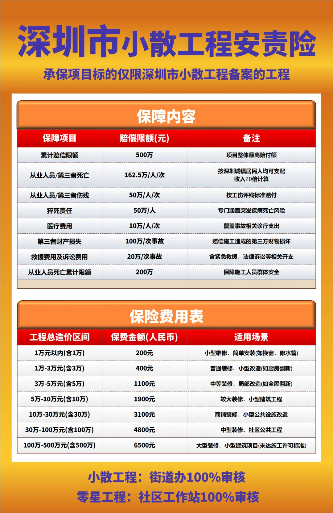 在深圳搞小散工程(500万以下/500㎡内装修、改造、广告安装等),安责险不是选择题是必答题!没买或买错,不仅备案通不过、开工即违法,还可能面临5-20万罚款,出事直接赔光积蓄!👇 这篇把合规要点、避坑指南、投保流程一次说透!