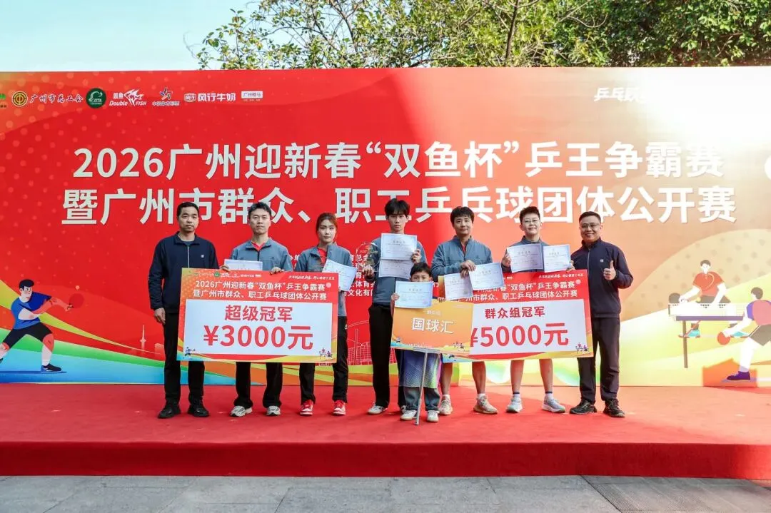 经过激烈角逐,国球汇队获得本次赛事“超级冠军”,广汽集团队、广东省市场监督管理局工会队、南沙区总工会一队、广州水投自来水队分别荣获职工组前四名,国球汇队、素社精英队、莲花山乒乓球联队、学习队分别荣获群众组前四名。
