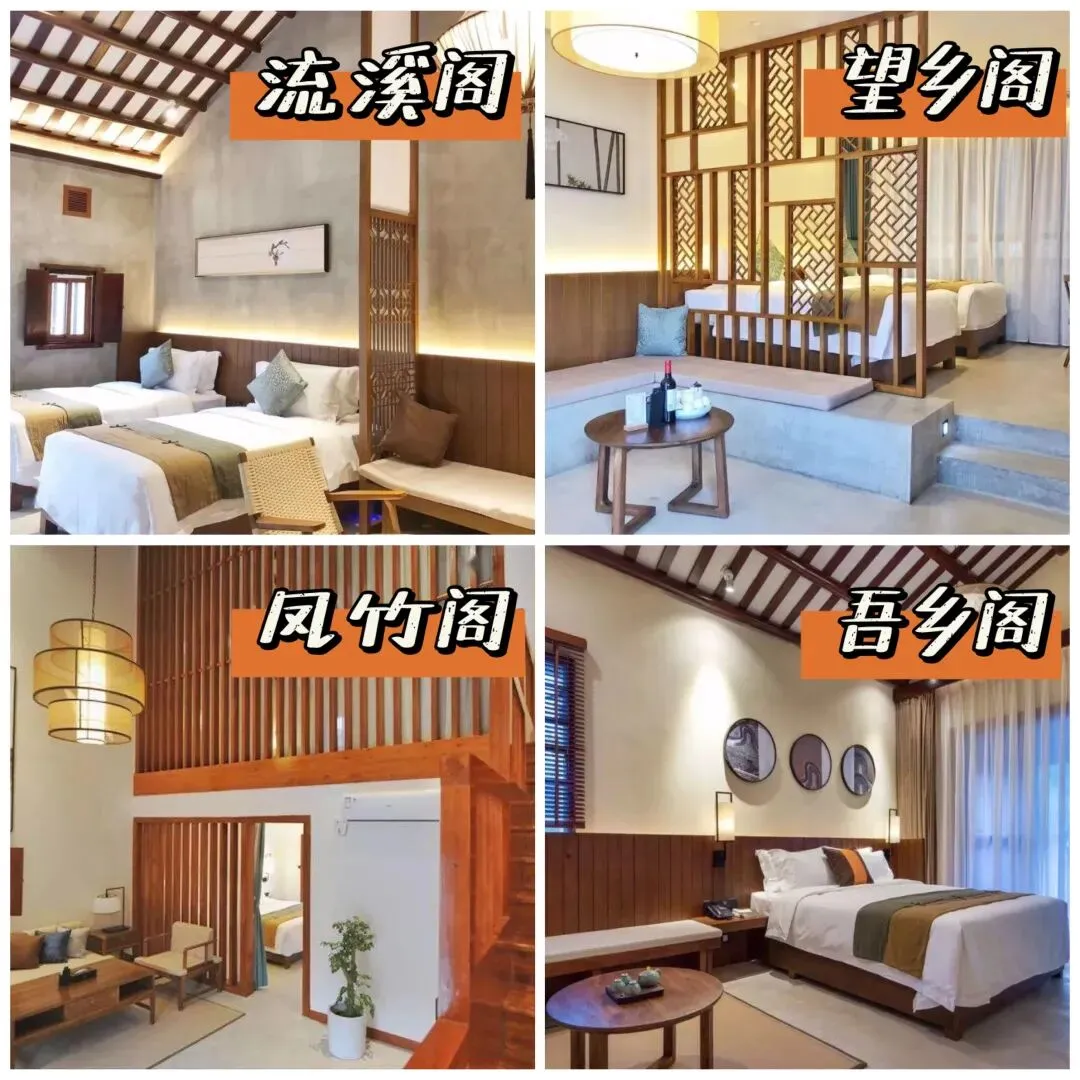 1)流溪阁:平层家庭套房,(民宿设有3间平层家庭套房);面朝溪流池塘和果园,是三口之家的理想选择;
