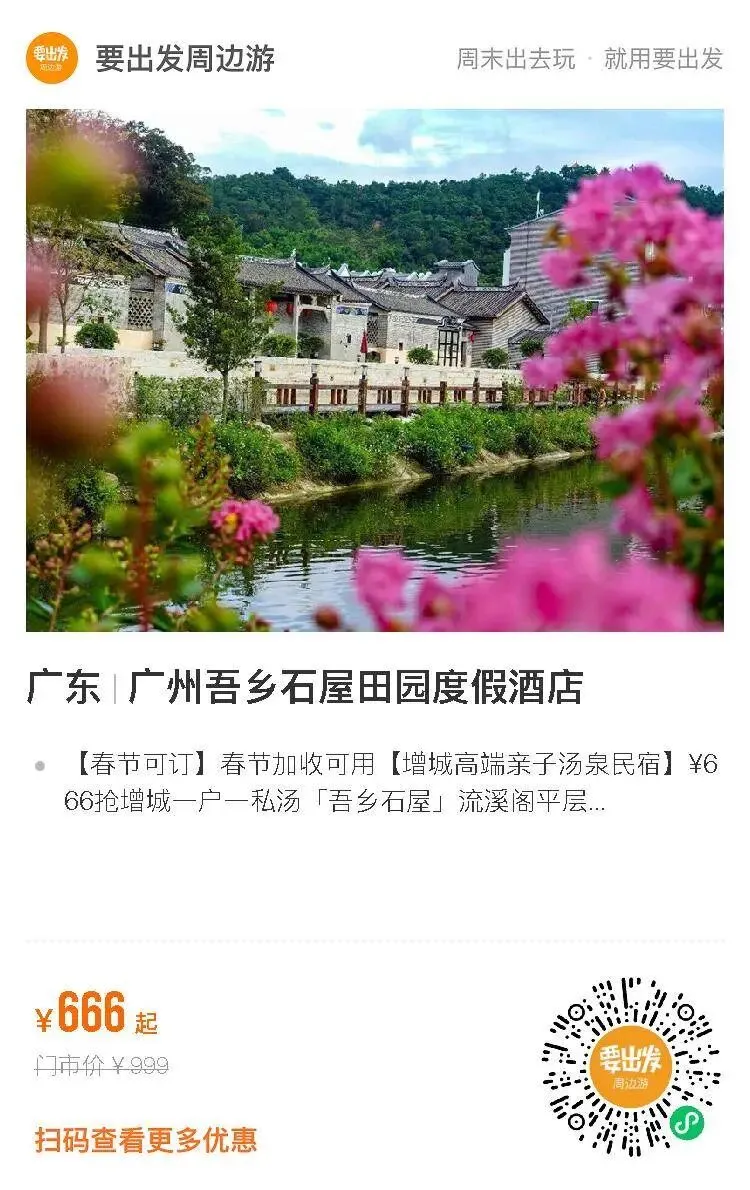 推荐路线:Day 1 : 早上广州出发前往增城→入住增城吾乡石屋→欣赏客家文化建筑→品尝当地特色美食→后山竹林公园徒步/农场喂马→畅游无边山泉水泳池/温泉尽享休闲时光→观家庭影院电影