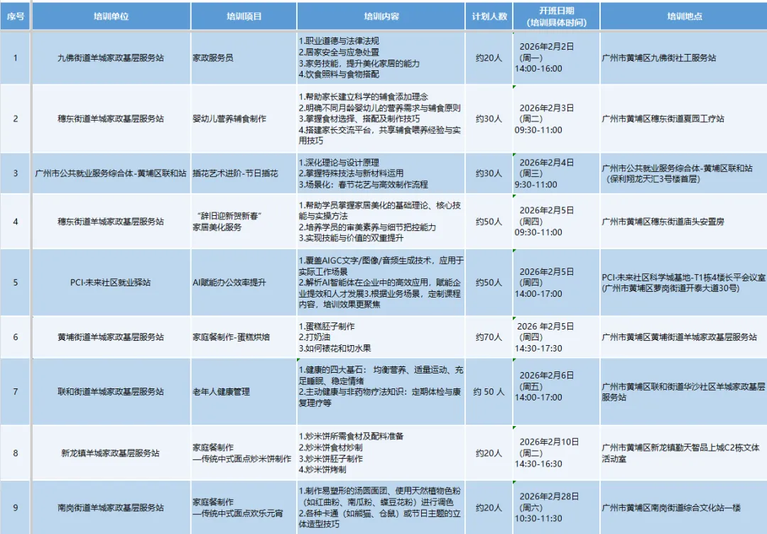培训地点:广州市黄埔区黄埔街道羊城家政基层服务站