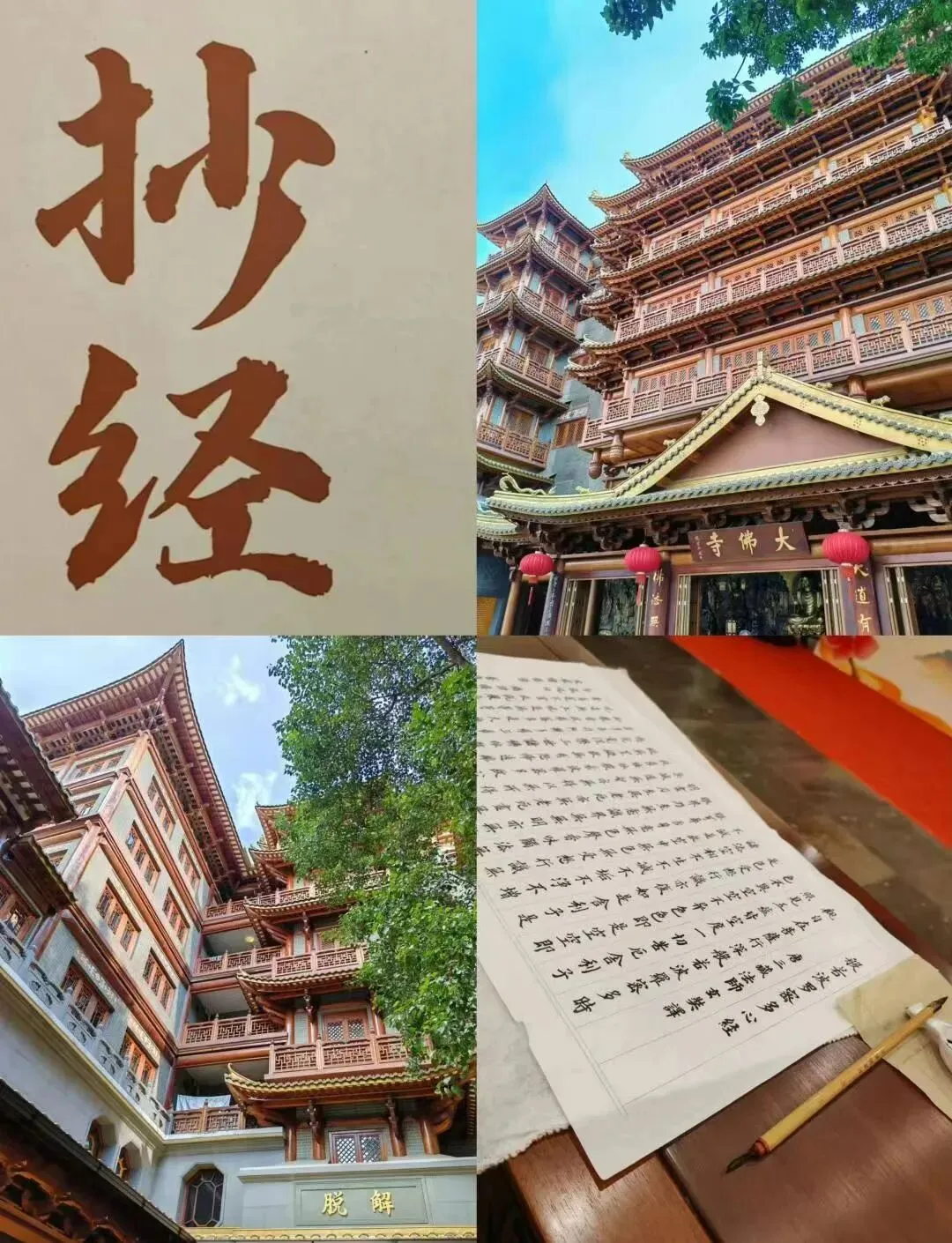 抄经,是大佛寺最具代表性的体验活动,无需具备书法基础,无需自带工具,寺院免费提供宣纸、毛笔、墨汁,每周定期举办,无论你是信徒、书法爱好者,还是单纯想逃离喧嚣、静心解压的普通人,都能参与其中,在笔墨书香中,感受禅意的力量。