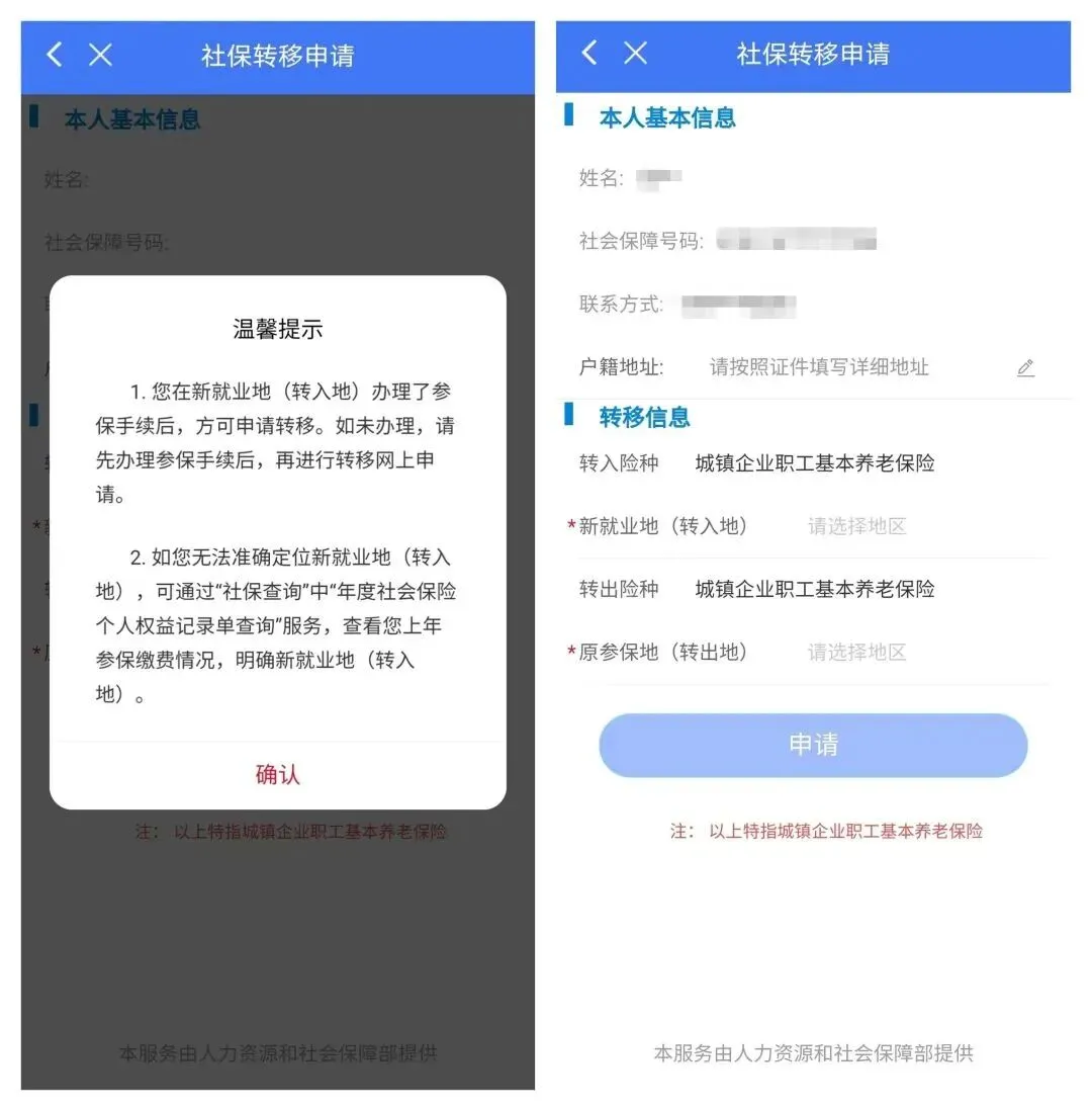 ✅第二步:录入个人基本信息和转移信息等,最后提交申请。