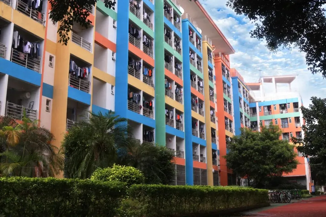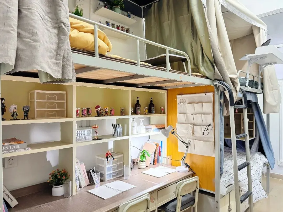学生公寓6人间标配电梯、洗衣机、空调、电风扇、直饮水机、电热水器、独立卫生间等,入学赠送定额水电,洗热水澡,喝直饮水无需充值水卡,标准大学宿舍等你来住!