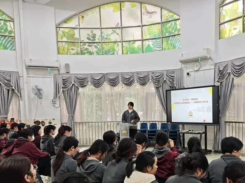 俊华园区大二班保育员谢慧莲老师作为保育代表进行分享。讲述了在枫叶幼儿园的成长,逐渐掌握了科学照料、安全防护等专业技能,用爱心与耐心守护孩子们的日常成长。