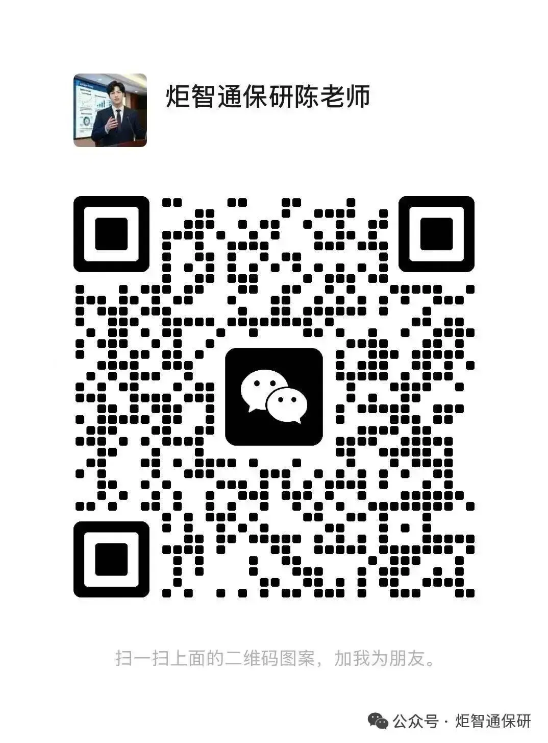 炬智通保研,陪伴每一个有远见的你,从起点规划,至名校圆梦。想获取专属你的大一保研启动规划?立即关注并扫码咨询!