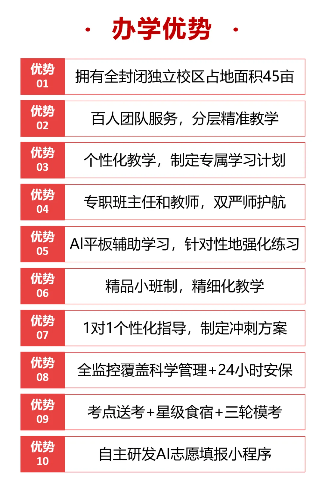 小班授课、全封闭式管理 |