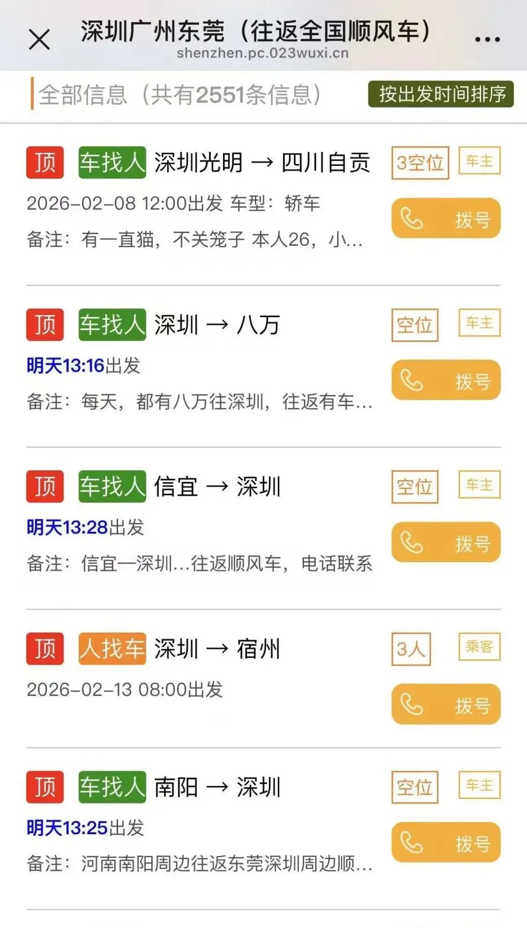 【拼车返乡过年啦】深圳顺风车群,车找人、人找车信息、当前2551条、都是顺路!