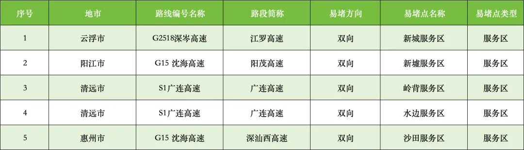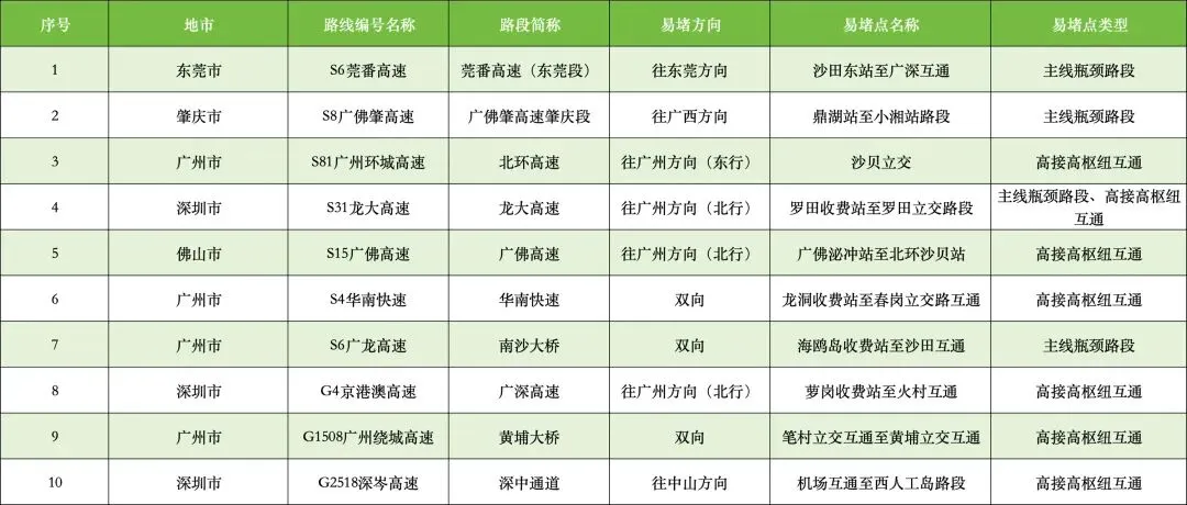 主要集中在2月2日至2月13日,每日高峰时段多分布于10:00–12:00、16:00–19:00,其中2月7日(农历十二月二十)至9日(农历十二月廿二)易缓行点段最为密集,其中,广佛高速(广佛泌冲站至北环沙贝站)、G4京港澳高速(萝岗收费站至火村互通)等路段较为繁忙。