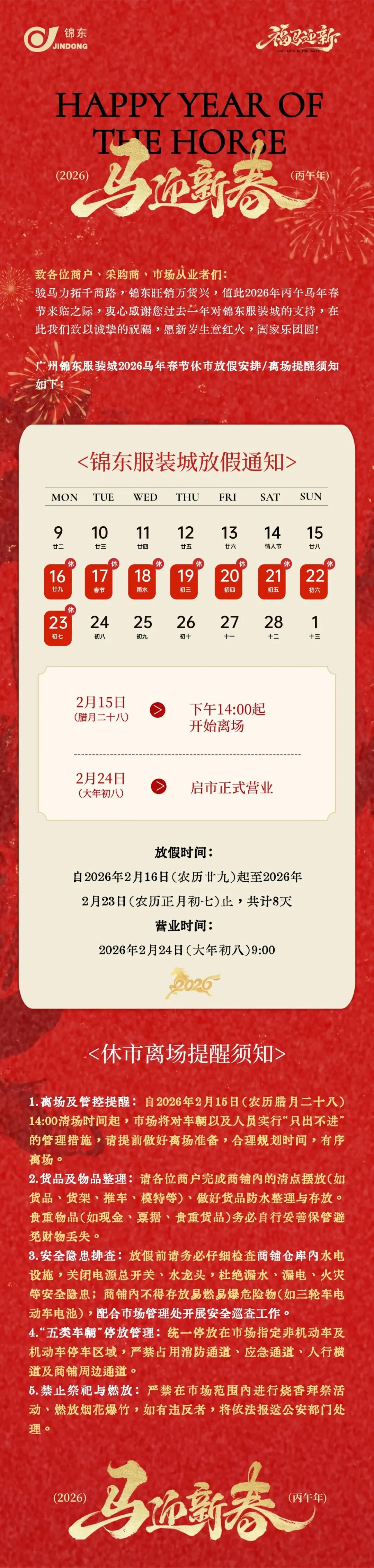 2026年广州锦东服装城春节放假通知