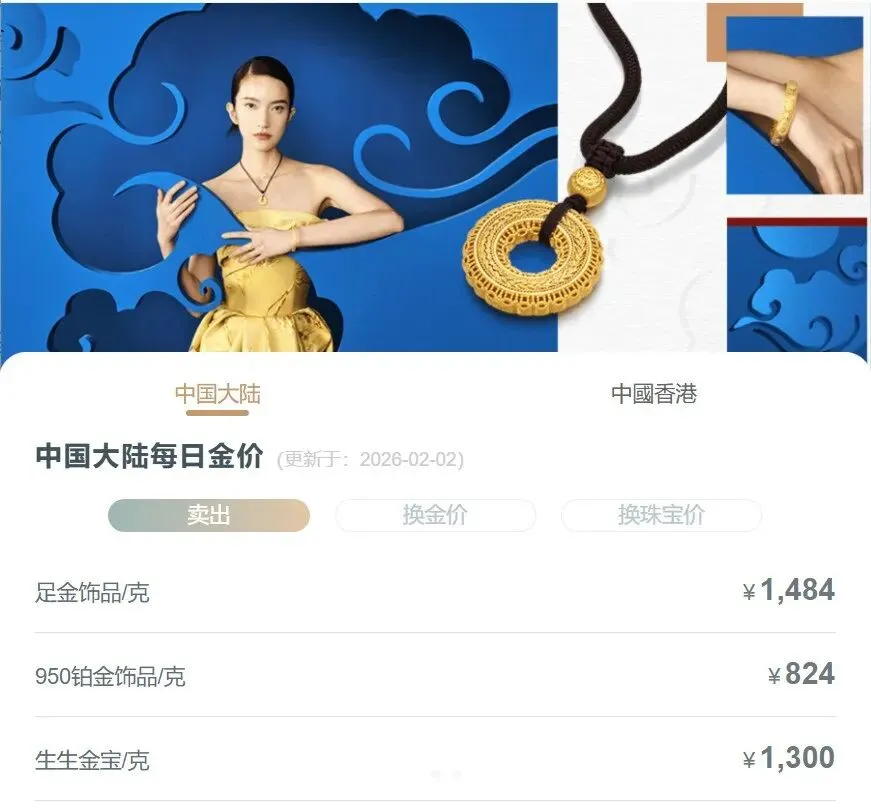 查询发现,周生生足金饰品报1484元/克,较前一日1618元/克跌134元。