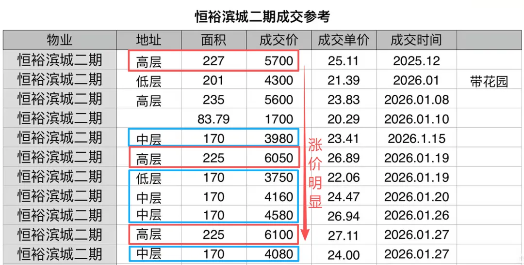类似的剧情也在深圳湾的标杆豪宅恒裕滨城二期上演。听说去年12月一套227㎡的房子卖了5700万,而今年1月成交的两套225㎡的房子,总价都突破了6000万。算下来,一个月涨了300多万!更夸张的是,这个小区1月份就成交了12套,而去年一整年才卖了17套左右,确实是“量价齐升”。