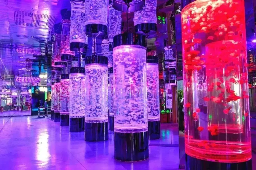 一根根发光的“水晶柱” 里,住着超多水中小精灵