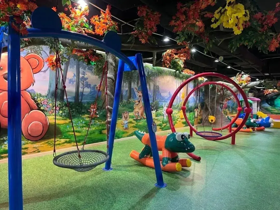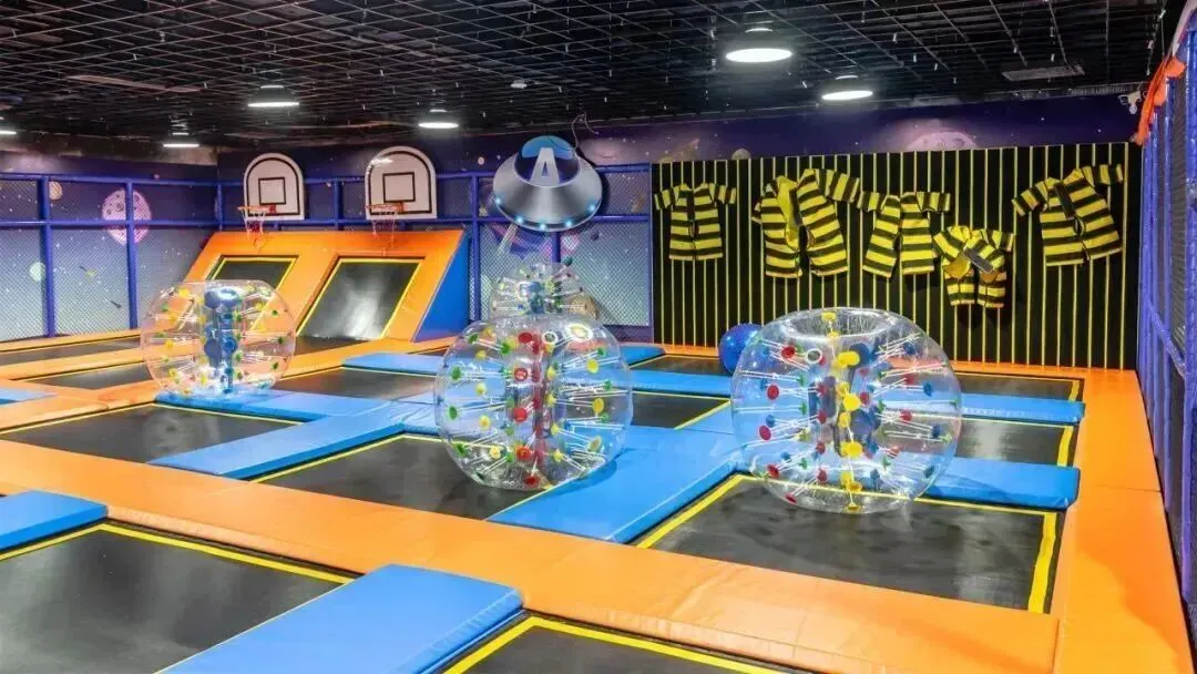 一蹦三尺高!弹性十足的蹦床区,让孩子们跳个够,释放满满活力