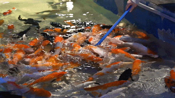 再来看水里,鱼群早就“嗷嗷待哺”啦