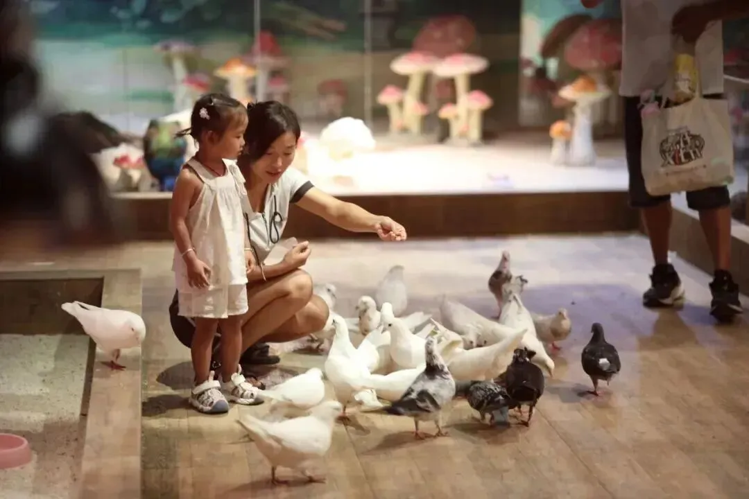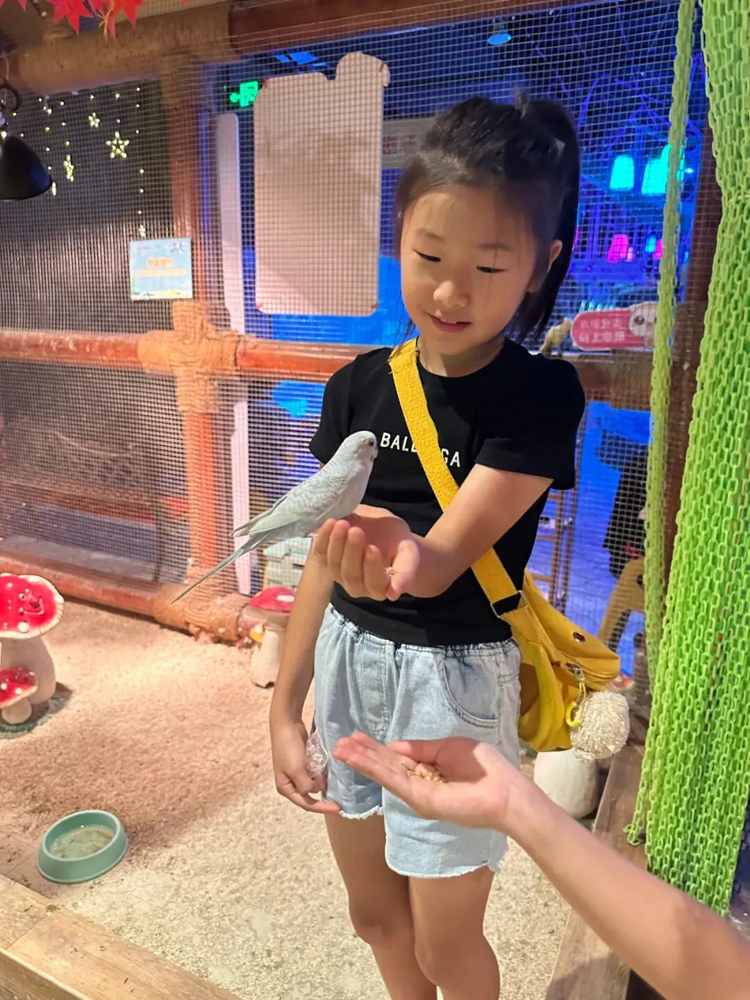 软乎乎的,啄得手心痒痒的~ 小朋友惊喜得直跳脚