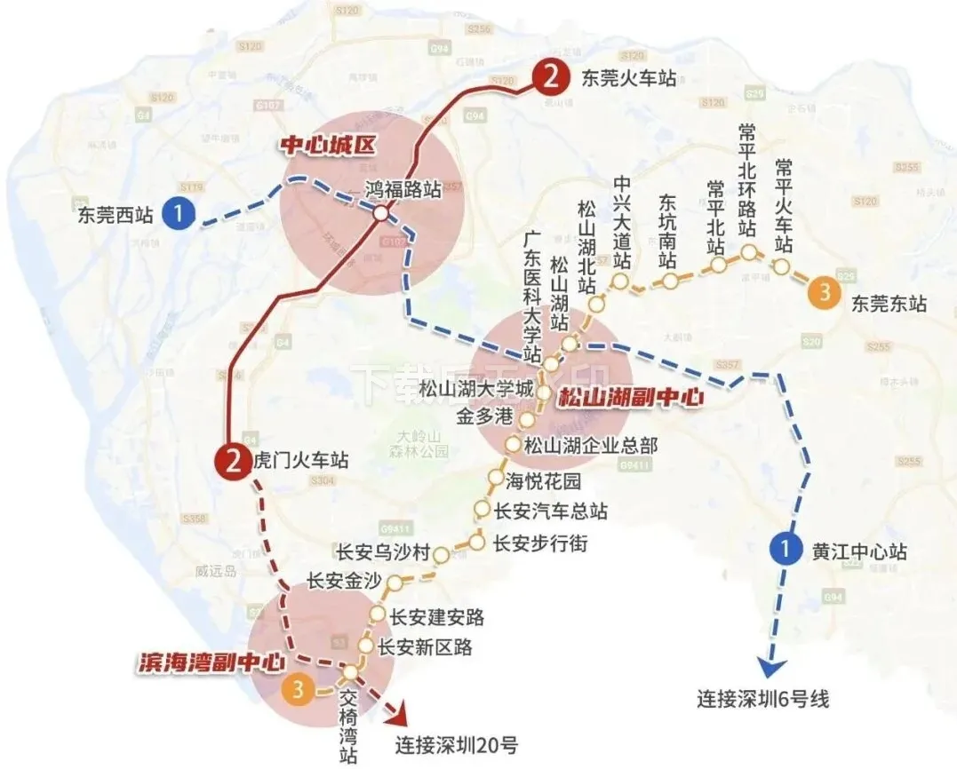 暂定站点:交椅湾站、长安新区路、长安建安路、长安金沙、长安乌沙村、长安步行街、长安汽车总站、海悦花园、松山湖企业总部、金多港、松山湖大学城、广东医科大学站、松山湖站、松山湖北站、中兴大道站、东坑南站、常平北站、常平北环路站、常平火车站、东莞东站。