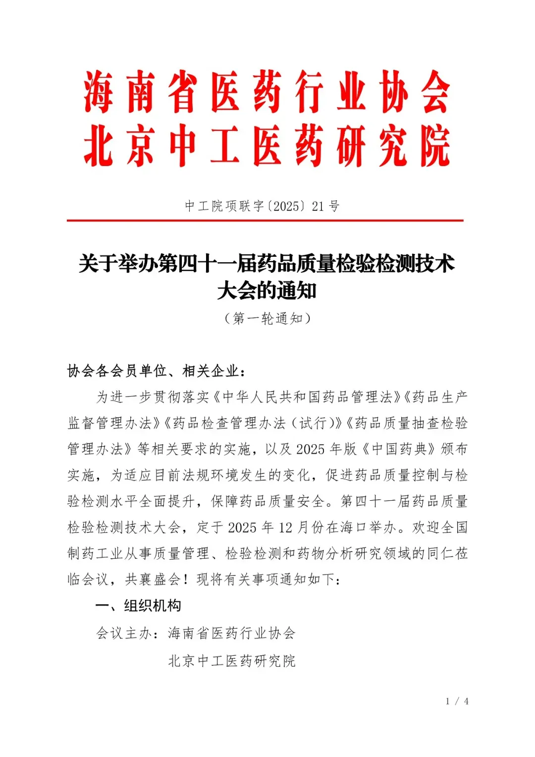 会议名称:第43届药品质量检验检测技术大会