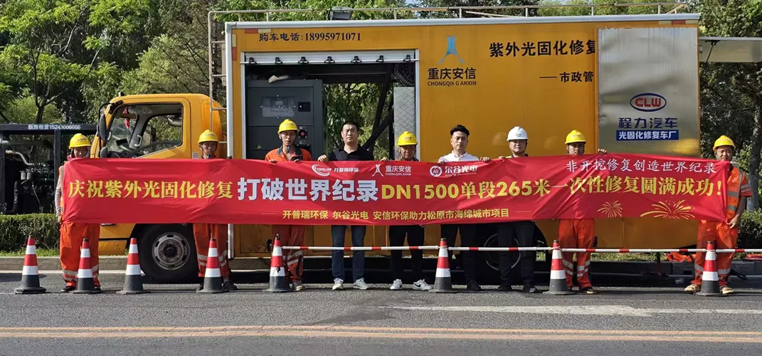 东莞市尔谷光电科技有限公司的UV-CIPP紫外线光固化系统斩获技术新突破,成功打破DN1500管径单段265米一次性修复的世界纪录,刷新非开挖管道修复行业极限。