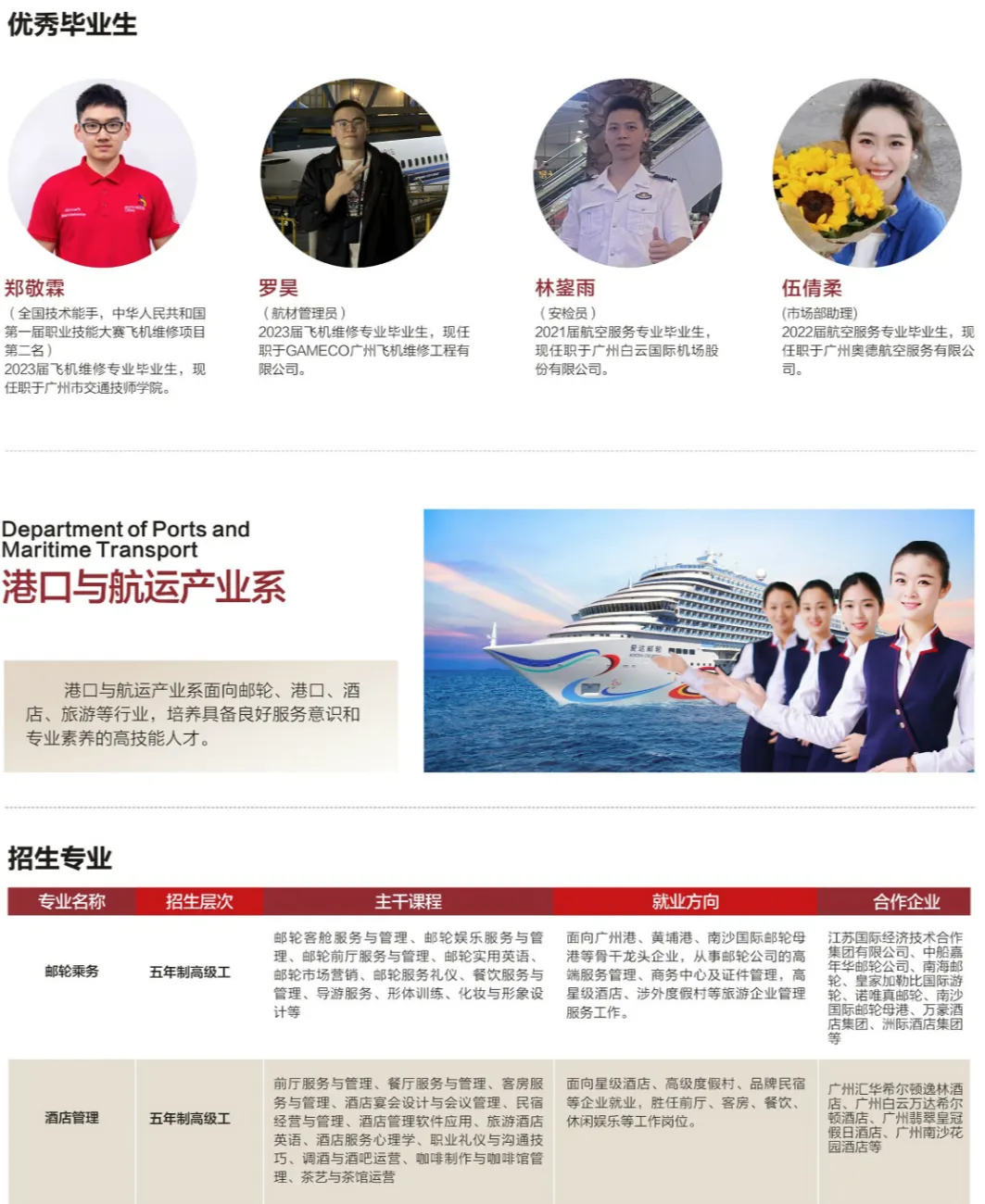 学校围绕“交通”核心,专业设置覆盖汽车、航空服务、现代物流、轨道交通、港口航运等多个领域,形成了“陆海空网”互联互通的专业群。