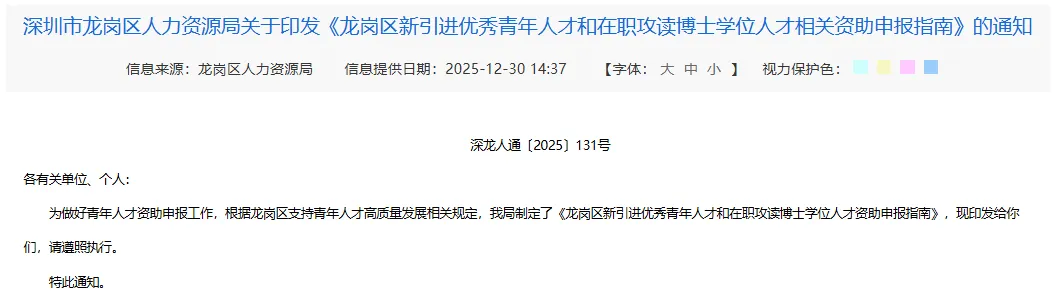 (八)本指南资助与龙岗区其他补贴奖励同类的,按照从优、从宽、从高、不重复的原则执行。因上级政策调整等原因,导致本指南无法继续实施的,按照上级政策规定执行。龙岗区优秀毕业生生活补贴政策执行至2026年1月5日(以引进文件签发时间为准),相关工作安排按照《深圳市龙岗区人力资源局关于优秀毕业生生活补贴业务与新引进优秀青年人才入户补贴业务相关安排的通知》执行。