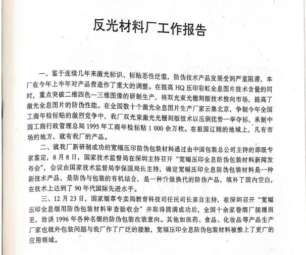 成立于1986年的深圳大学反光材料工厂作为深圳的定点生产厂,其生产的“JS-1回归定向反光片”,当时被广泛应用在深圳公路路桩标志和自行车车牌,深受大众喜爱。深大反光材料厂为深圳市政府最早认定的23家高科技企业之一。