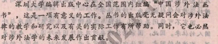 深圳大学组编的《中国涉外法丛书》,是我国第一套涉外经济法律大型丛书。我国著名国际法学家王铁崖先生对这套书给予了高度肯定的评价。