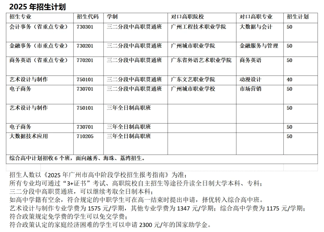 贸易职中地处千年商都核心,广州文脉之源,与多处历史名胜及红色史迹为邻,文化底蕴深厚,源远流长,校园环境清幽,古树罗立。学校拥有着一支高素质、专业化、创新型的师资队伍,汇聚了一批志存高远,知新乐学的优秀学子。近年来,“3+证书”本科录取人数冠绝全市、“强内涵,创优质”办学质量评价同类学校首屈一指、办广州市综合高中试点敢为人先、省市技能竞赛中屡创佳绩。