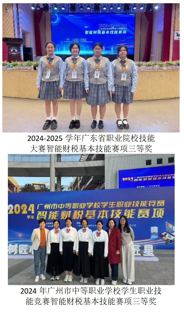 学生参加技能竞赛,硕果累累。获得全国职业英语技能竞赛二等奖,一带一路暨金砖国家技能发展与技术创新的“数字金融”、“大数据分析应用与决策”赛项全国决赛二等奖,“财经素养”赛项全国决赛三等奖。近三年,学生参加广东省中等职业学校学生技能竞赛,获得一、二、三等奖共59人;获得广州市中等职业学校学生技能竞赛一、二、三等奖共156人。