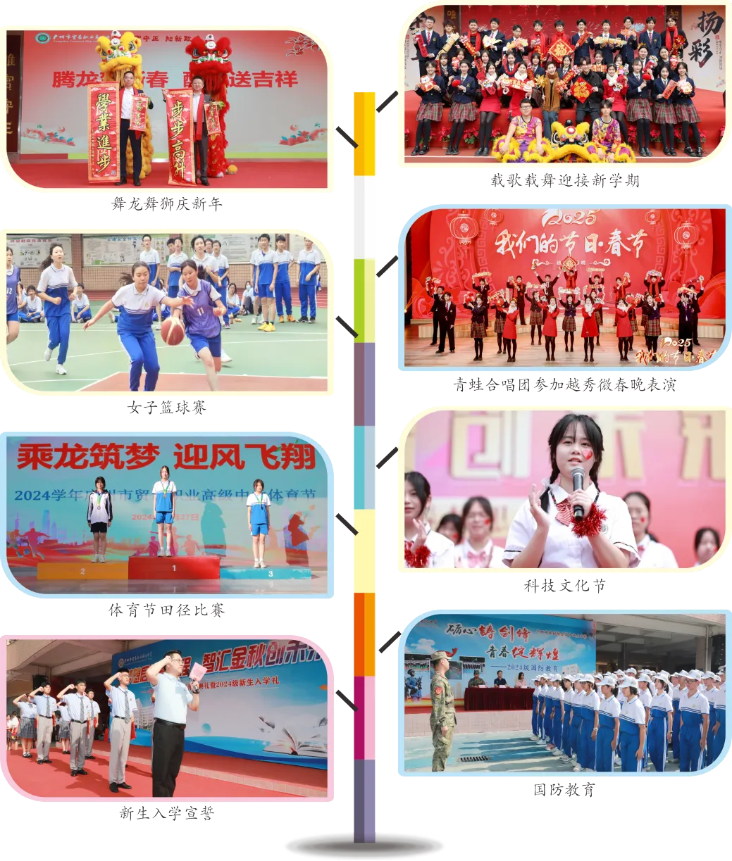 学校秉持立德树人育人宗旨,坚持“守正扬彩”育人模式,开展“培德”“启智”“健体”“尚美”“乐劳”等课程,五育融合,润心铸魂,培养阳光、自信、有专长、能出彩的一专多能型学生。学校注重通过丰富多彩的德育实践活动来提升学生的道德品质,如科技文化节、文艺节、体育节等,营造向真、向善、向美、向上的校园文化氛围。