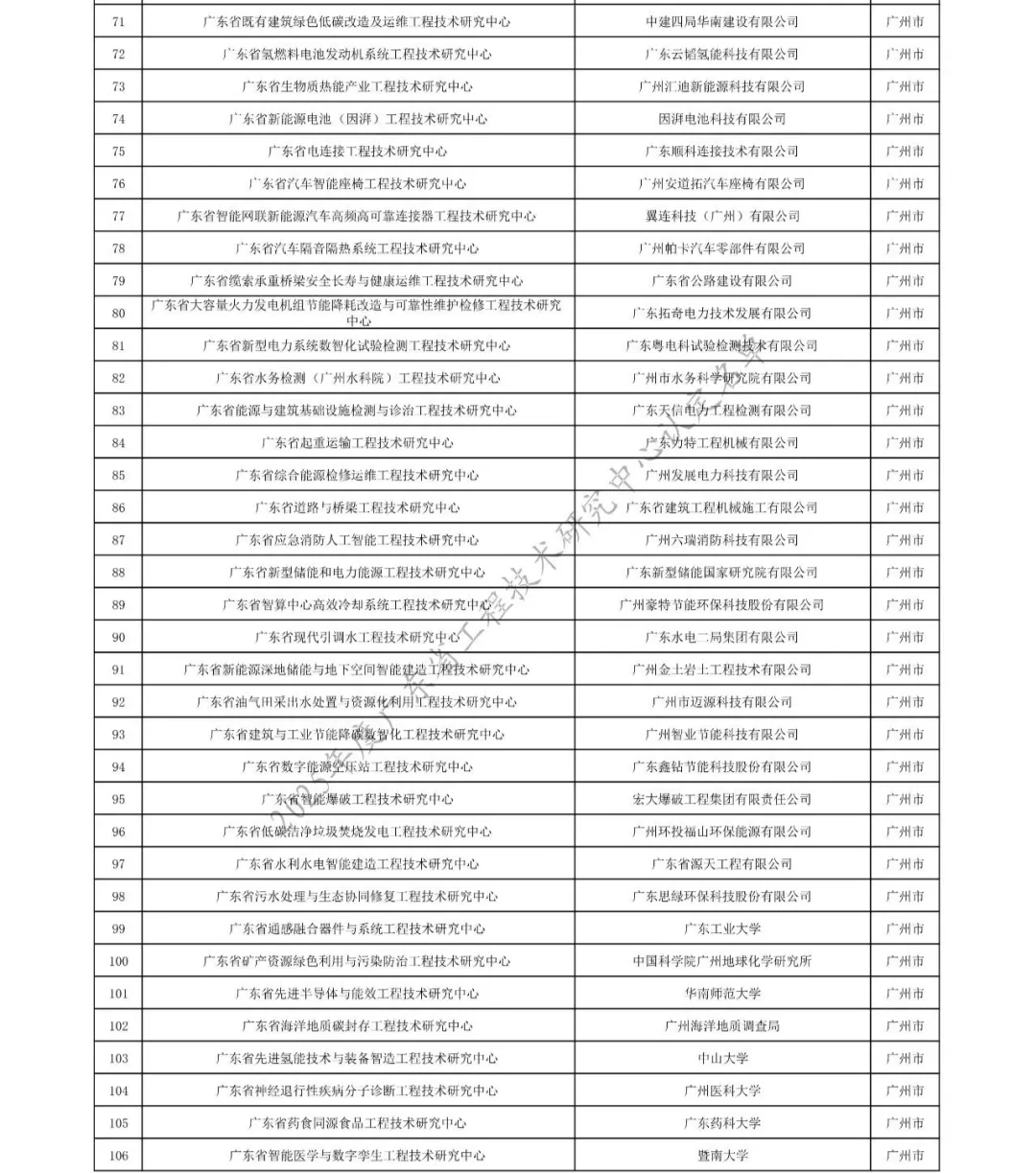 近日,《广东省科学技术厅关于认定2025年度广东省工程技术研究中心的通知》粤科函产字〔2026〕178号发布,广州市共有广东省电力人工智能工程技术研究中心等113家单位被认定为2025年度广东省工程技术研究中心。具体名单如下: