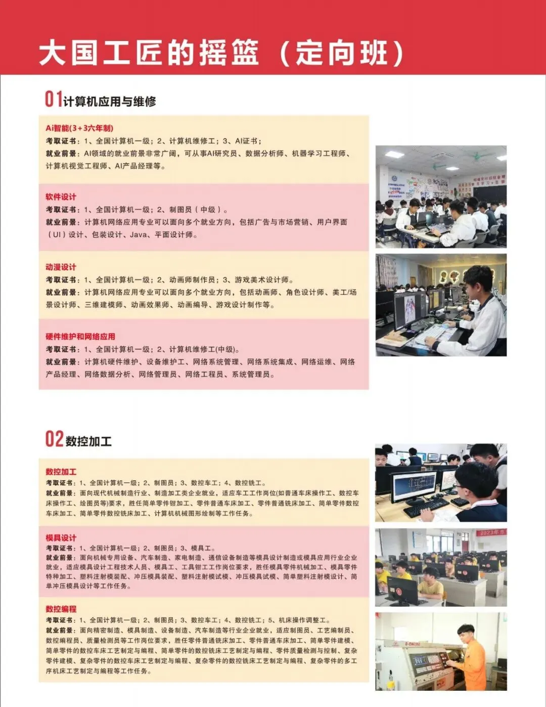 东莞市中德技工学校2016年创办,位于“中国最美小镇”清溪镇,毗邻深惠,交通便捷。校园占地8万㎡、建筑面积9万㎡,环境雅致,师资雄厚,设施完备。依托政企支持,以集团化共建打造“优质招生、严格管理、精心培养、精准就业”特色办学体系,建校八年教学质量稳步提升,获广泛社会认可。