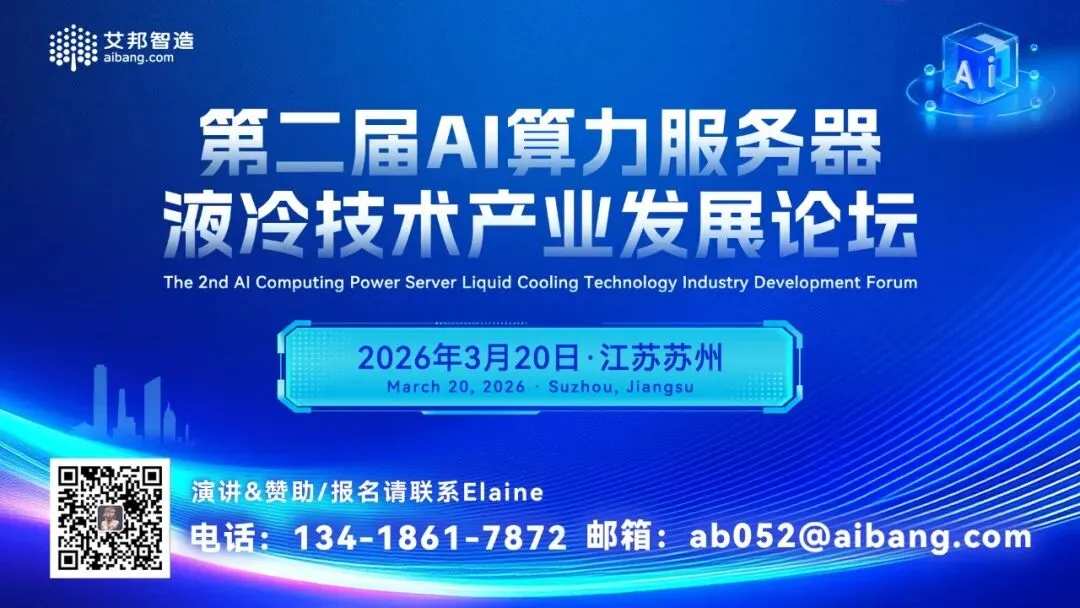 艾邦建有服务器液冷散热交流群,聚焦服务器液冷技术前沿,涵盖冷板/浸没/喷淋式方案设计、材料升级(耐腐蚀管路、密封件创新)、CDU运维与能效优化、政策标准解读(PUE、OCP规范)等。欢迎大家加入我们,共绘服务器液冷散热未来!