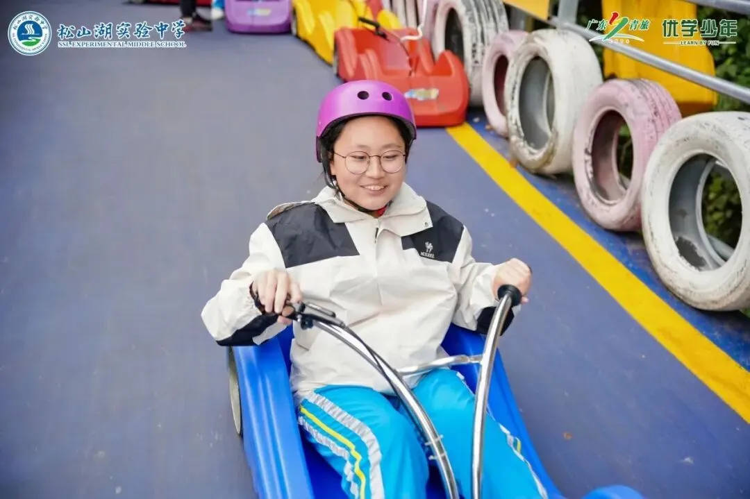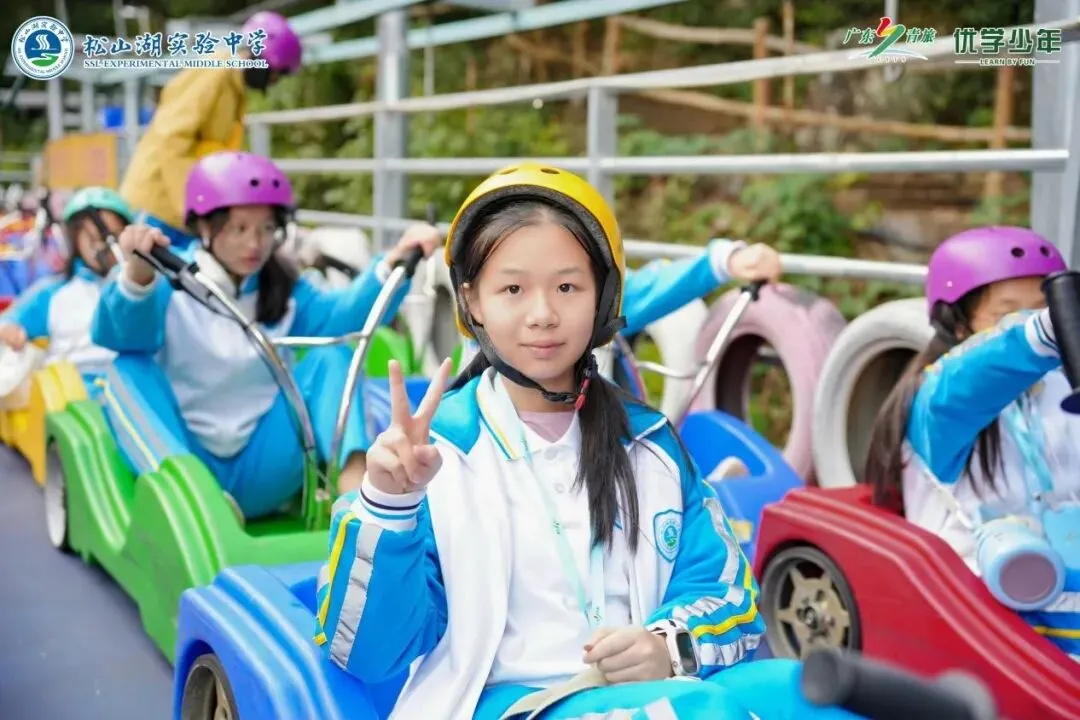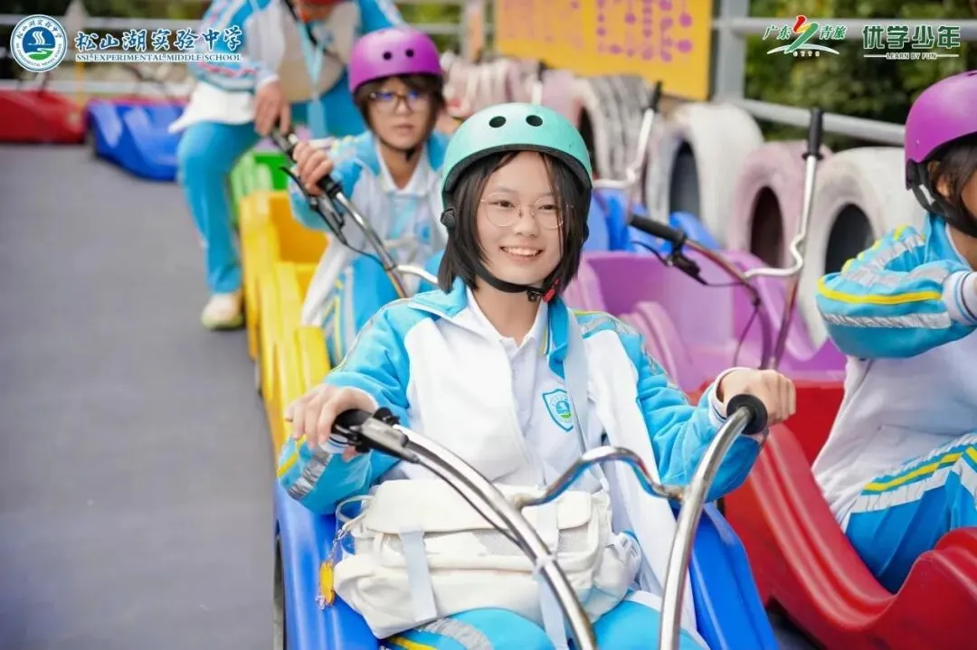 同学们坐上云上飞车,风在耳边呼啸,沿途的青山绿水尽收眼底,刺激与快乐交织成最难忘的瞬间。