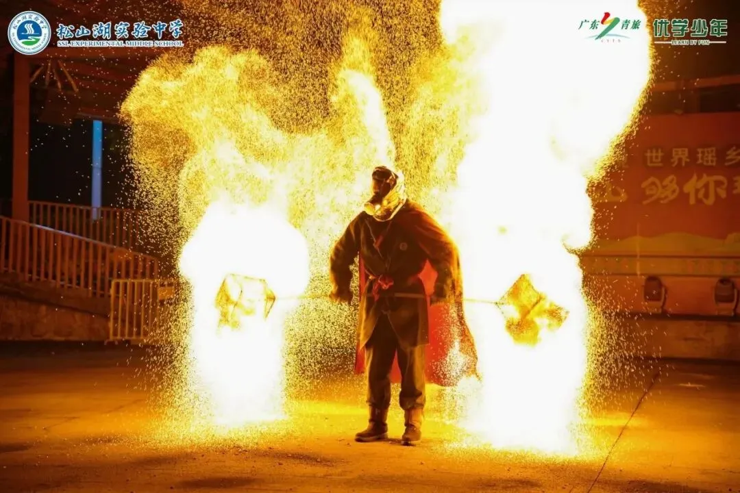夜幕降临,同学们在餐厅体验了独特的瑶族欢迎仪式,随后瑶族同胞用热情的歌舞迎接大家。篝火旁,传统瑶族表演展现着民族风情,最震撼的打铁花环节,炽热的铁水在空中绽放成漫天星火,如烟花般绚烂,同学们纷纷举起手机记录这一非遗奇观,欢声笑语在山谷中回荡。