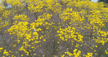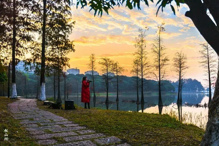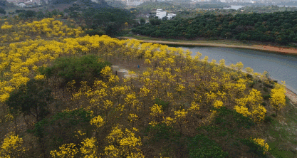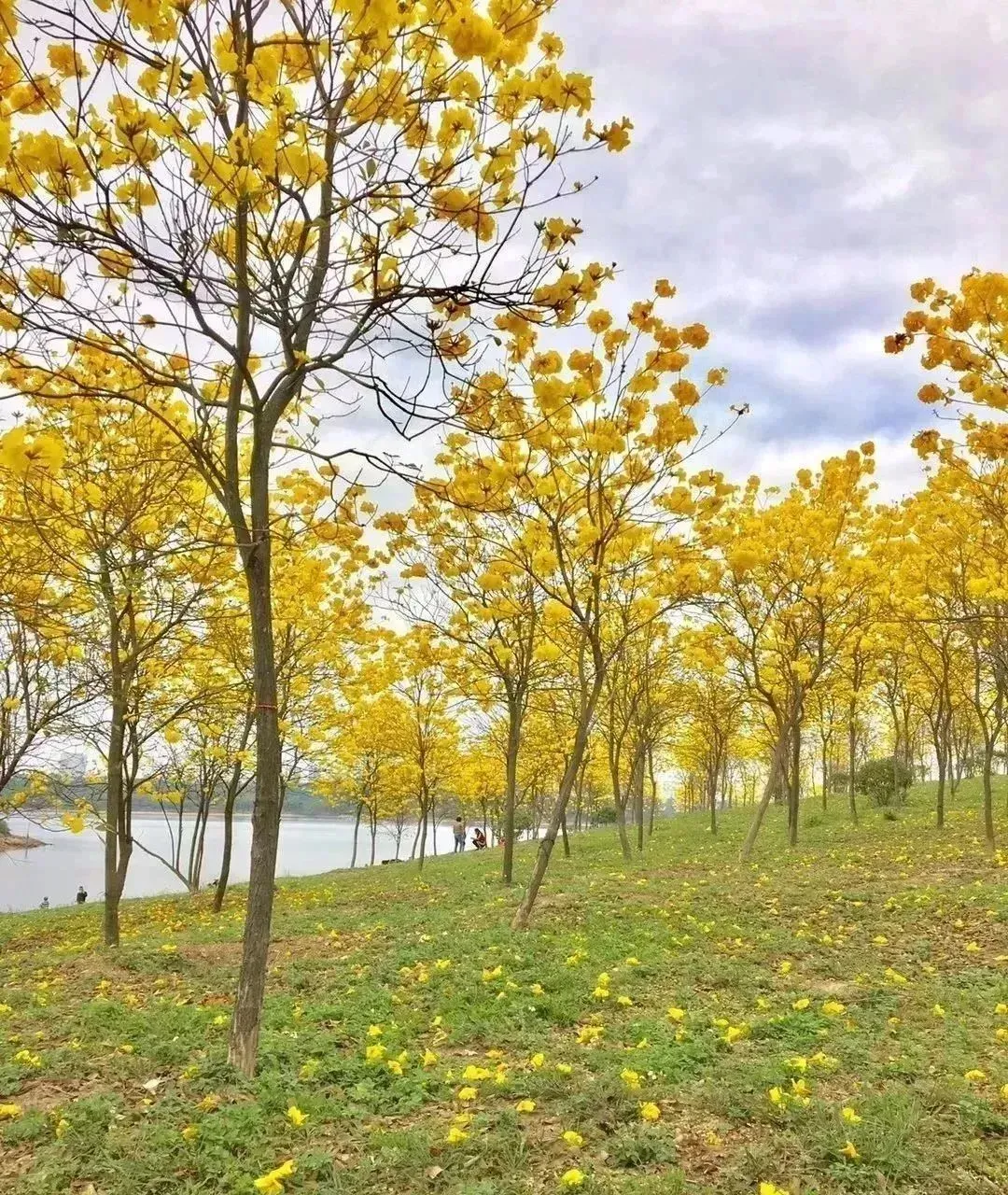 随后前往【东莞松山湖景区】(车程约1.5小时,游览约1小时)当春日的信风拂过松山湖,黄花风铃木便奏响了它一年一度的华丽乐章。远远望去,整片园林仿佛被明亮的阳光凝固成了实体,化作一树树流淌的黄金瀑布。走近细看,那铃铛般的小花簇拥成团,缀满每一条枝桠,不见一片绿叶争抢风头,只有纯粹、热烈、毫无保留的金黄,在蓝天下泼洒出最浓烈的油彩。微风拂过,万千“金铃”轻轻摇曳,在光影间闪烁跳动,犹如大地向天空发送的璀璨密语。漫步其下,仿佛被笼罩在一个温暖、宁静而辉煌的穹顶之下,每一步都踏在春天最浪漫的序曲上。这不仅是花的绽放,更是松山湖之春一次倾其所有的盛大告白,短暂而绚丽,足以点亮一整年的记忆。(花开花落,全由天气和自然决定,每年时机都有些不同。因此,行程中提到的“盛花期”、“花海”等,是我们满怀期待为您规划的理想状态,但无法作为100%的保证,敬请您谅解)