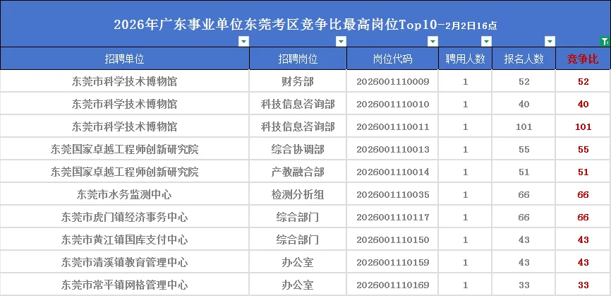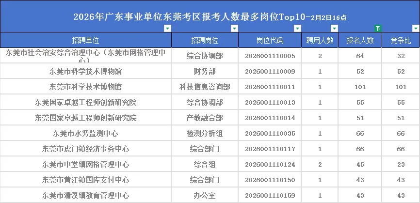 【首日数据出炉】2026东莞事业单位报考人数统计:科技博物馆岗位最多人!