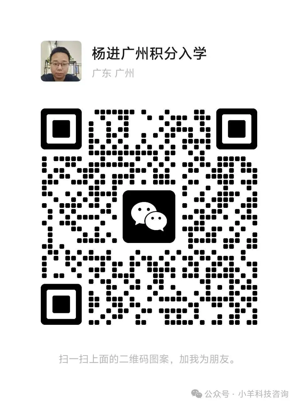 积分研究员杨进,四川农村来广州 14 年,两个女儿的爸爸,也是广州积分入学领域最早的研究者与普及者。2016 年起深耕广州积分入学政策,曾获《新快报》等媒体报道,10 年来始终站在家长的角度,帮大家规划入学、入户方案。不搞套路、不乱推考证加分,只根据每个家庭的真实情况,定制最合适的路径,尤其擅长帮低分家长拿下公立学位。至今已帮助十多万家庭了解政策、成功入学。创立「小羊科技咨询」,坚持一句承诺:多低积分都能有公立学位。在这里,只讲真话、只做实事,陪你稳稳搞定孩子在广州的上学大事。欢迎关注,与我同行。