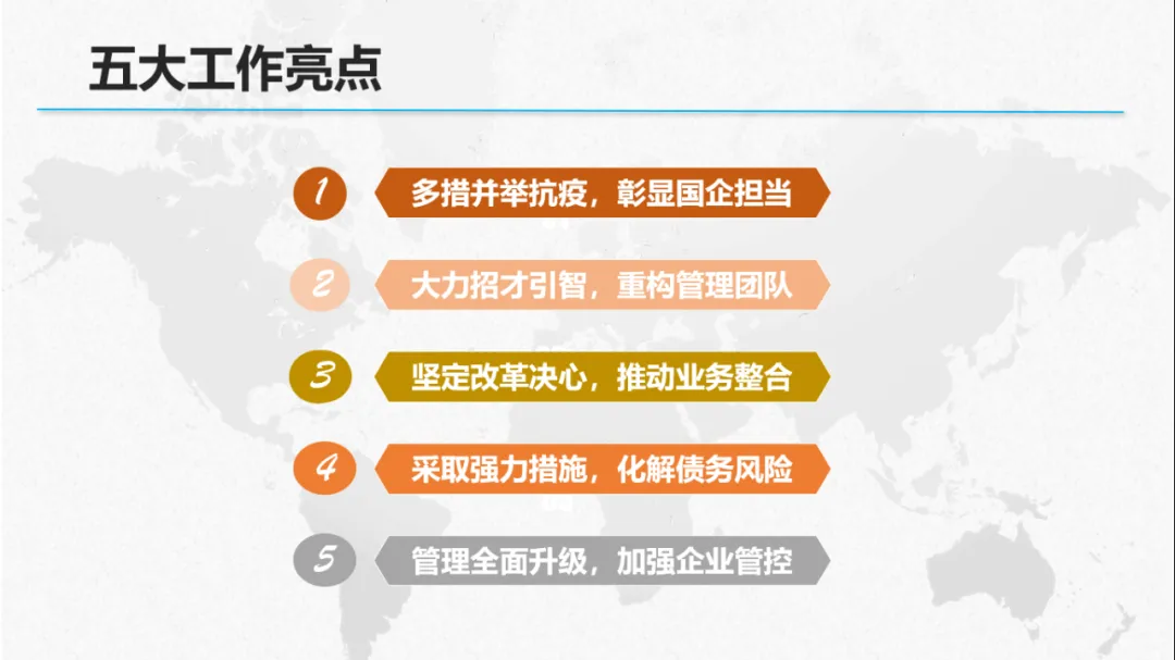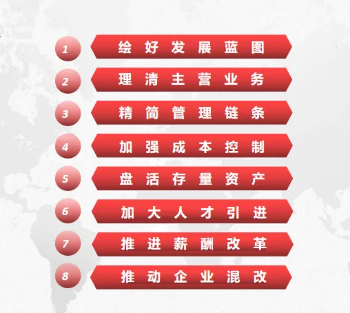 在新的一年里我们必须理清思路,补齐短板,铆足干劲持续改革创新,以新理念、新思路、新作为抢抓战略机遇期,谋划推动以下五项重点工作: 一是明晰战略,规划主业。我们通过聘请远卓咨询集团制定战略规划,进行全面的调研分析,规划公司主营业务,出台成立集团方案。 二是升格集团,转型发展。根据市国资委的战略部署和公司发展需要,尽快促成成立“东莞市国有资产经营集团有限公司”,从顶层设计上解决公司发展的瓶颈,隔离历史债务风险,剥离优质资产,促成公司转型发展,从准公益类企业转变为竞争类企业。 三是盘活资产,做强增量。牢牢把握东莞“三区叠加”重大历史机遇,盘活存量资产,提升国有资产价值。一方面盘活土地资源,推动项目落地;另一方面推进经营性资产划入,夯实公司集团化的产业基础。同时探索实施混改企业试点,计划将两个处于充分市场竞争的下属企业进行混改激发企业活力。 四是聚焦管理,提质增效。通过完善法人治理结构,优化组织管控模式,健全激励约束机制,加强信息系统建设,全面搭建起符合公司经营发展的管理制度体系,推进管理的标准化、规范化,保障公司高效经营、快速发展。 五是落实风控,保障发展。加强审计纪检监察,出清注销关停企业,推进债权实现,全面落实风险防控,多途径解决历史遗留问题,甩掉包袱,轻装上阵,为公司将来的业务拓展解决后顾之忧。在回顾总结取得的成就的同时也不忘记背后辛勤付出的公司各位同仁,正是有赖于这群积极投身于公司升级转型发展事业中的先进个人、集体,为公司的第三次战略性重组提供了有力支撑,为此我们表彰了一批甘于奉献,勇创一流的先进个人和集体楷模。我们今年特别设置了管理创新奖、经营创新奖,改革方能发展,创新才有出路,在公司的升级转型阶段,必须转变思维,从原来的“守成”转为“求进”,改革创新势在必行。让我们向以下先进个人、集体看齐,在新的一年里奋楫图强,以风雨无阻的姿态、一往无前的状态,奋力实现公司发展新突破。