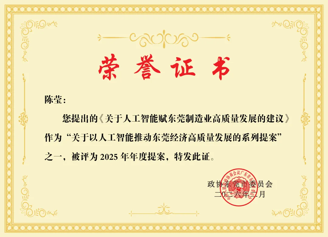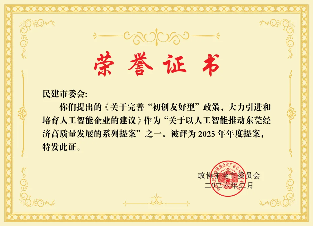 大会审议了政协第十四届东莞市委员会第五次会议议程,听取了政协第十四届东莞市委员会常务委员会工作报告、政协第十四届东莞市委员会常务委员会关于十四届四次会议以来提案工作情况的报告,表彰了履职优秀委员和年度提案、优秀(表扬)提案、办理提案先进单位。民建市委会集体提案(撰稿人:王倩茜)、王嬿、刘潜发、陈莹(撰稿人:张若琳)提交的《关于以人工智能推动东莞经济高质量发展》系列提案,因贴合东莞“人工智能+”行动部署、精准破解产业升级痛点,荣获大会年度提案表彰,彰显了民建的专业履职能力。