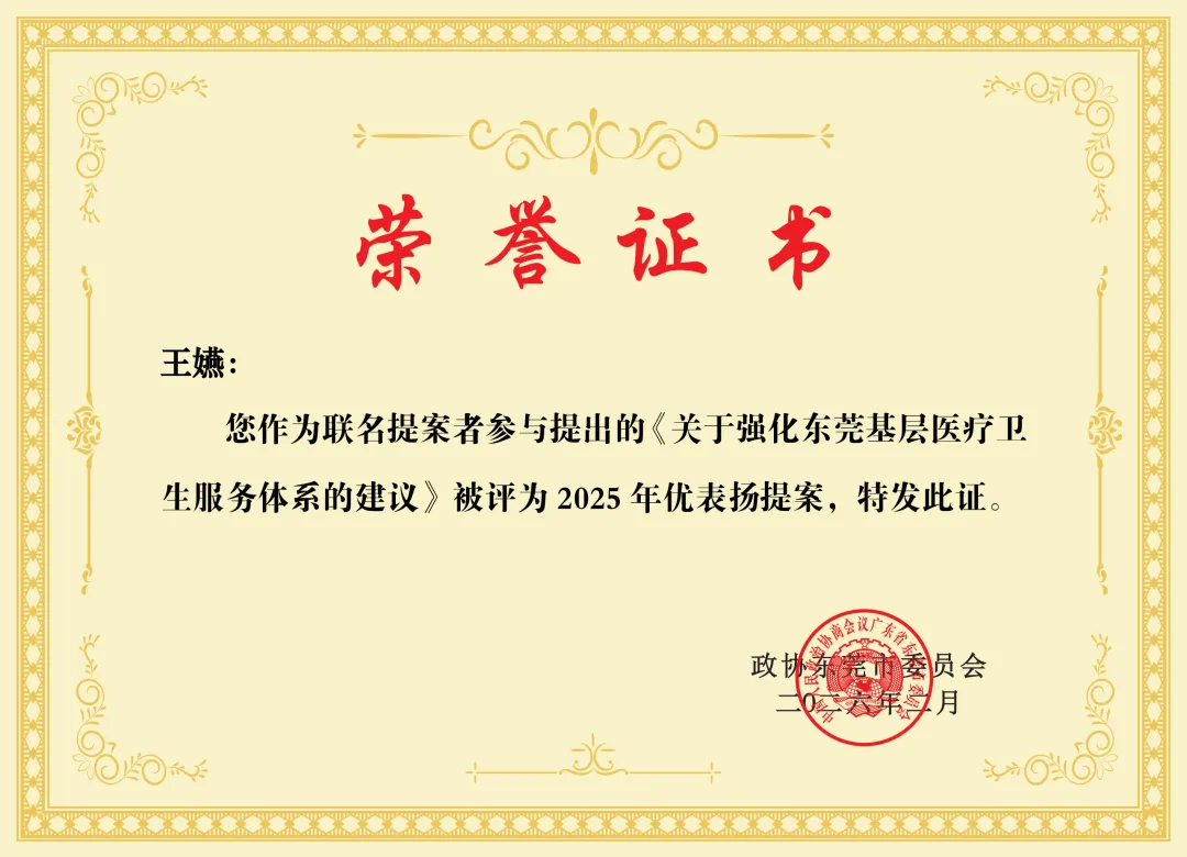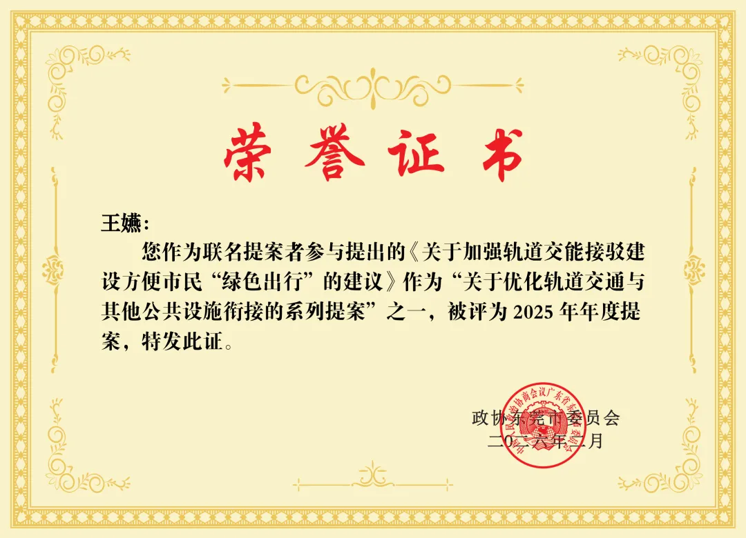 获表彰提案荣誉证书