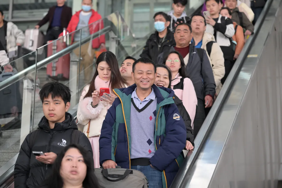 为保障旅客平安、有序、温馨出行,今年春运期间,广州南站开行营业列车可达1300趟,同比增加97趟,同时提升服务品质,让旅客体验更美好。