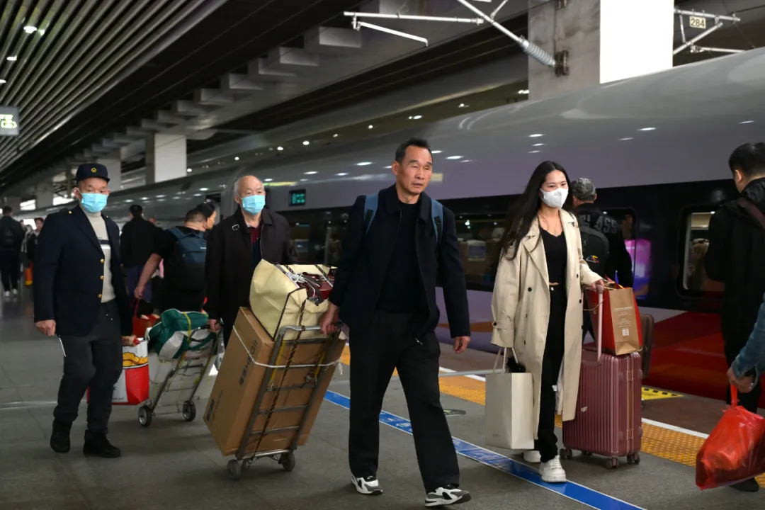 广州南站开启72条实名制验证通道、48条安检通道,新启用的38套安检智能判图系统进一步提高了旅客通行效率,现场客流平稳、秩序井然。增派的70名“初心·春澜”党员服务岗和“初心·青穗”青年志愿者服务队在老人优享候车专区、爱心候车专区、母婴室等区域,为重点旅客提供便利进出站、引导帮扶、协助乘降等服务,确保旅客温馨舒适出行。