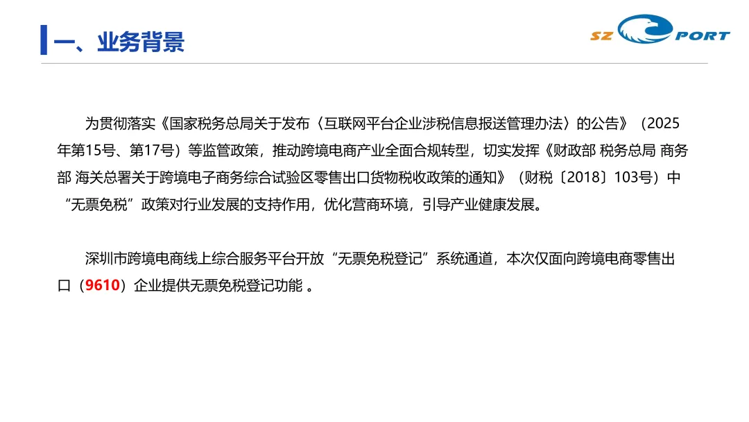 深圳“无票免税”登记模块正式上线!匹配9610模式