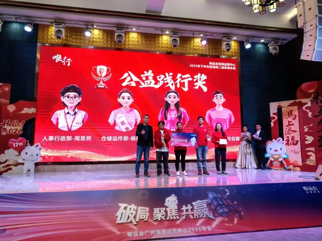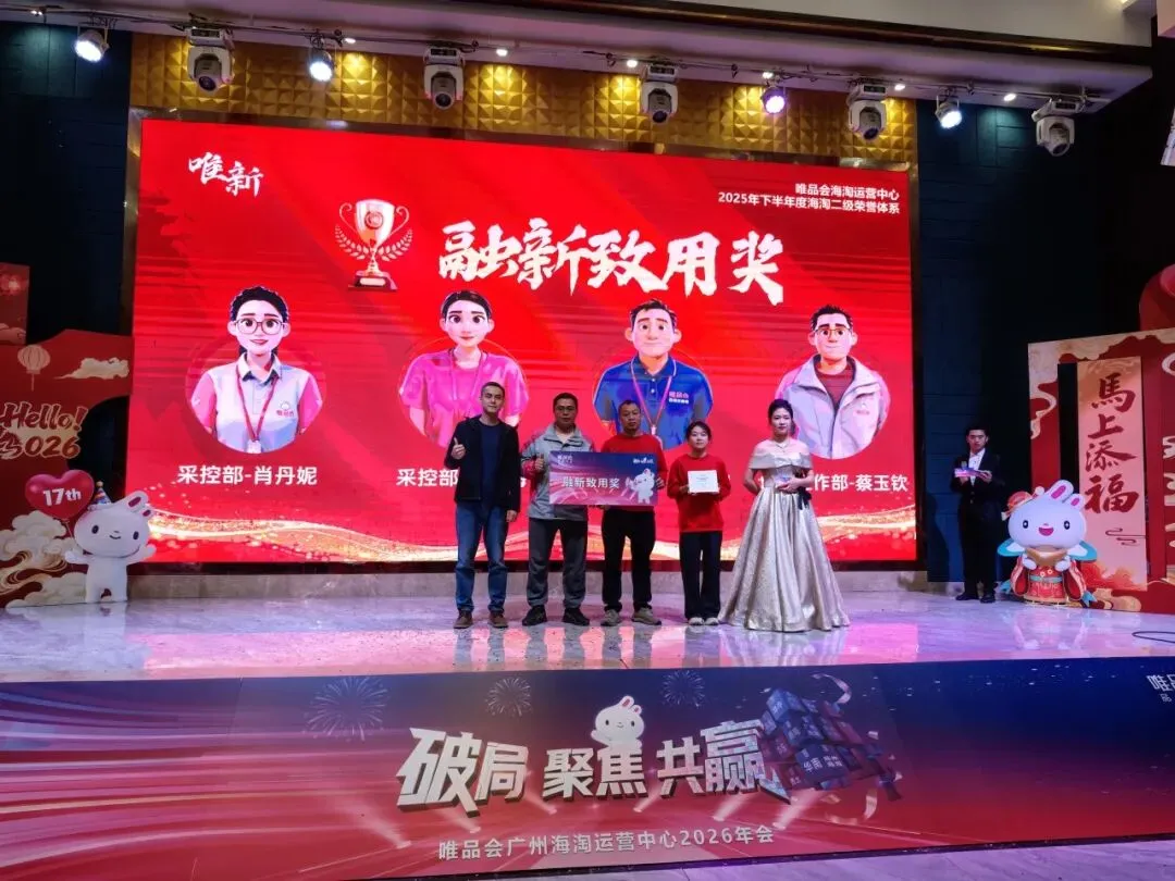 过去的一年里,涌现出一批优秀个人与一支卓越团队,他们在各自的岗位上发光发热,为广州海淘的发展做出了突出的贡献。为此,本次年会表彰了2025年下半年海淘二级荣誉的融新致用奖、公益践行奖;2025年度物流中心优秀员工、年度优秀管理者、以及年度优秀团队。