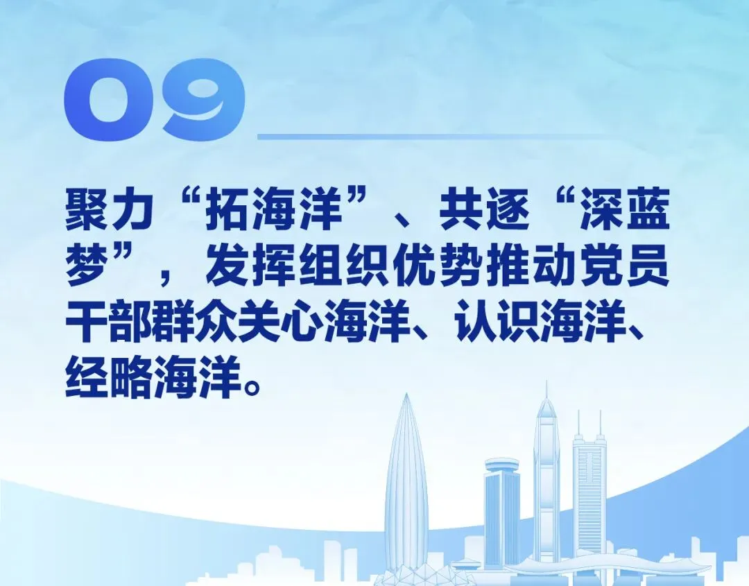加大海洋科学类专业公务员招录力度,新录用相关专业公务员占现有人员的16.2%。以“阅见深蓝 向海图强”为主题举办第五届深圳干部“5·5读书”活动,开办全球海洋中心城市建设系列专题培训班,提升干部服务海洋经济能力本领。支持深圳海洋大学、海洋博物馆、深海科考中心一体化建设,推动深圳海洋大学顺利设筹。举办“央地国企深圳行”海洋专场·大鹏站活动,推动9个涉海央地合作项目签约落地、总投资额超74亿元。推动沿海区域打造17个海洋文化党群服务中心,集成旅游服务、科普科学、文化展示等功能,塑造滨海城市风貌。