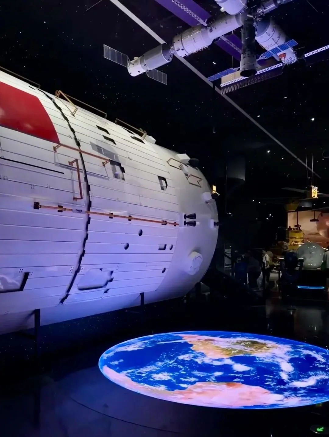 氛围感拉满的太空世界,是孩子最爱的展区。整体光线偏暗,搭配星空布景,仿佛置身宇宙,特别美。