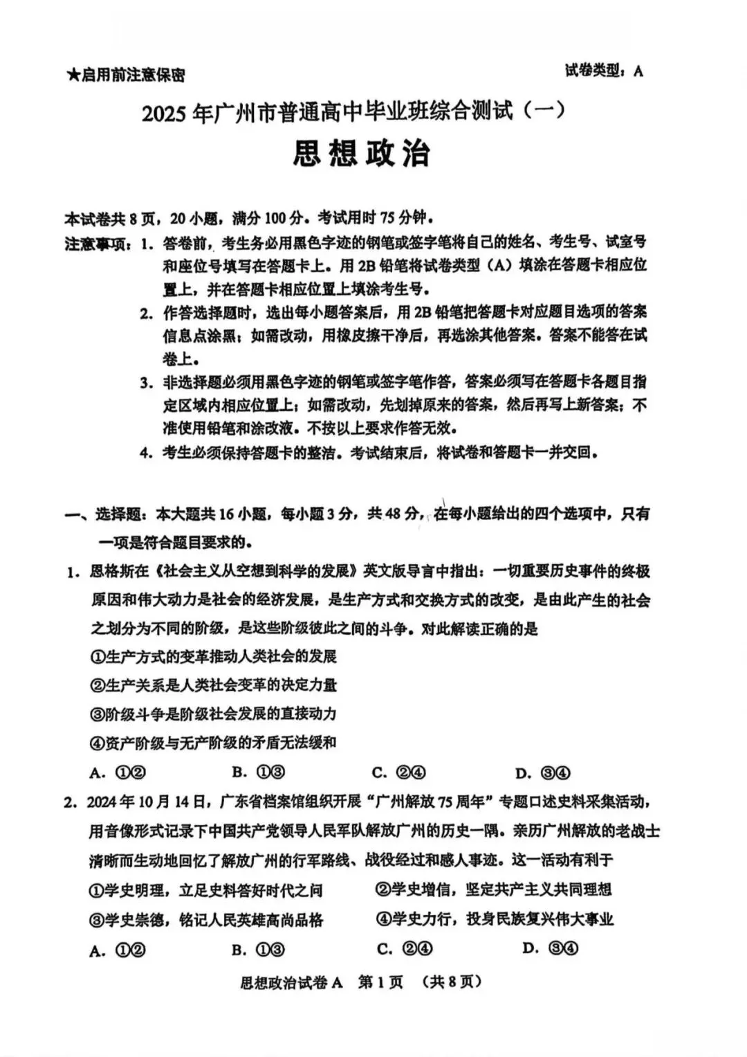 所以给大家准备了“2025年广州高考一模真题及参考答案”,帮孩子提前摸清一模命题规律,实现精准模拟测试!